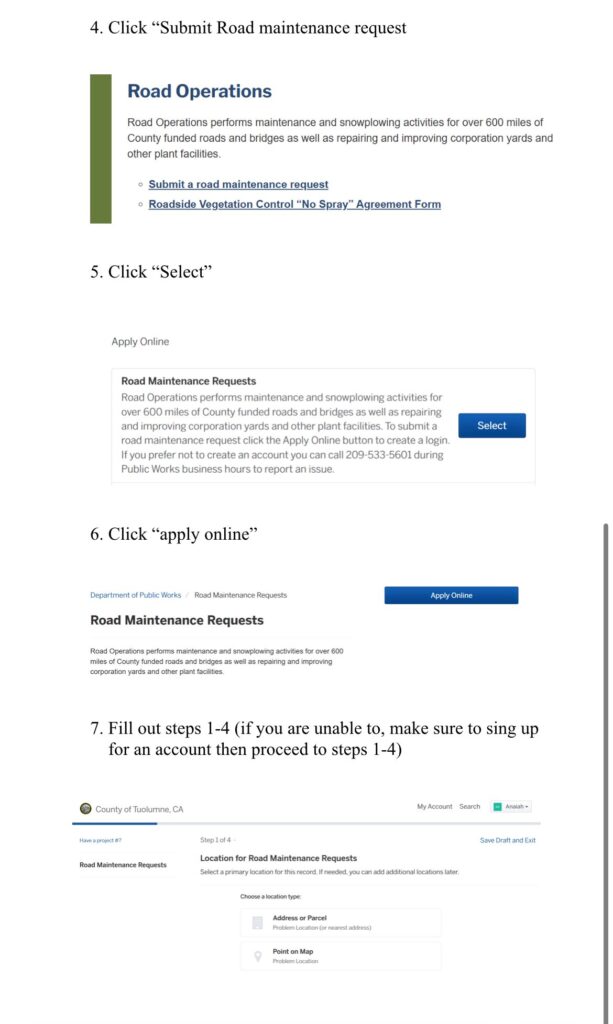 - How to submit a road maintenance request: