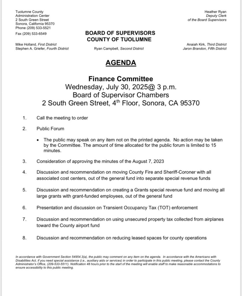 - Tuolumne County Board of Supervisors Recap – July 15, 2025