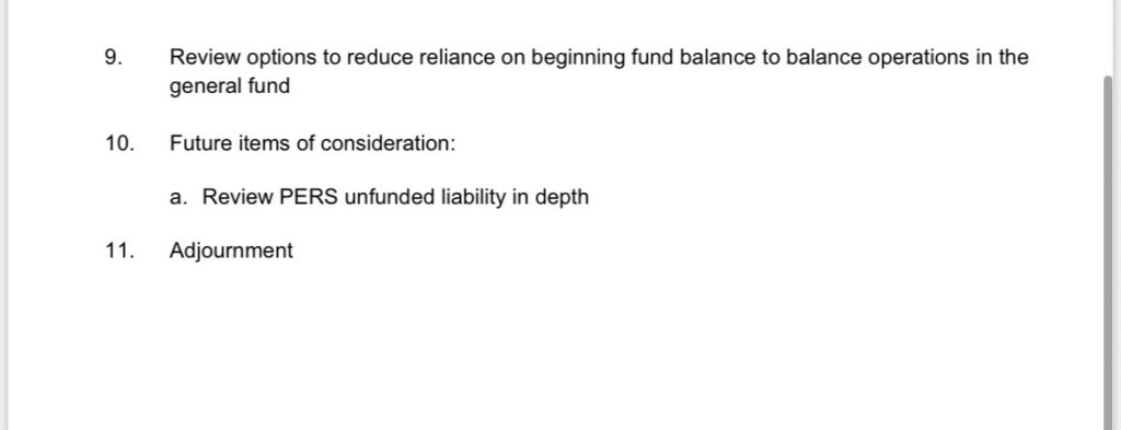 - Here are some topics on the agenda for the upcoming Finance Committee meeting this Wednesday: