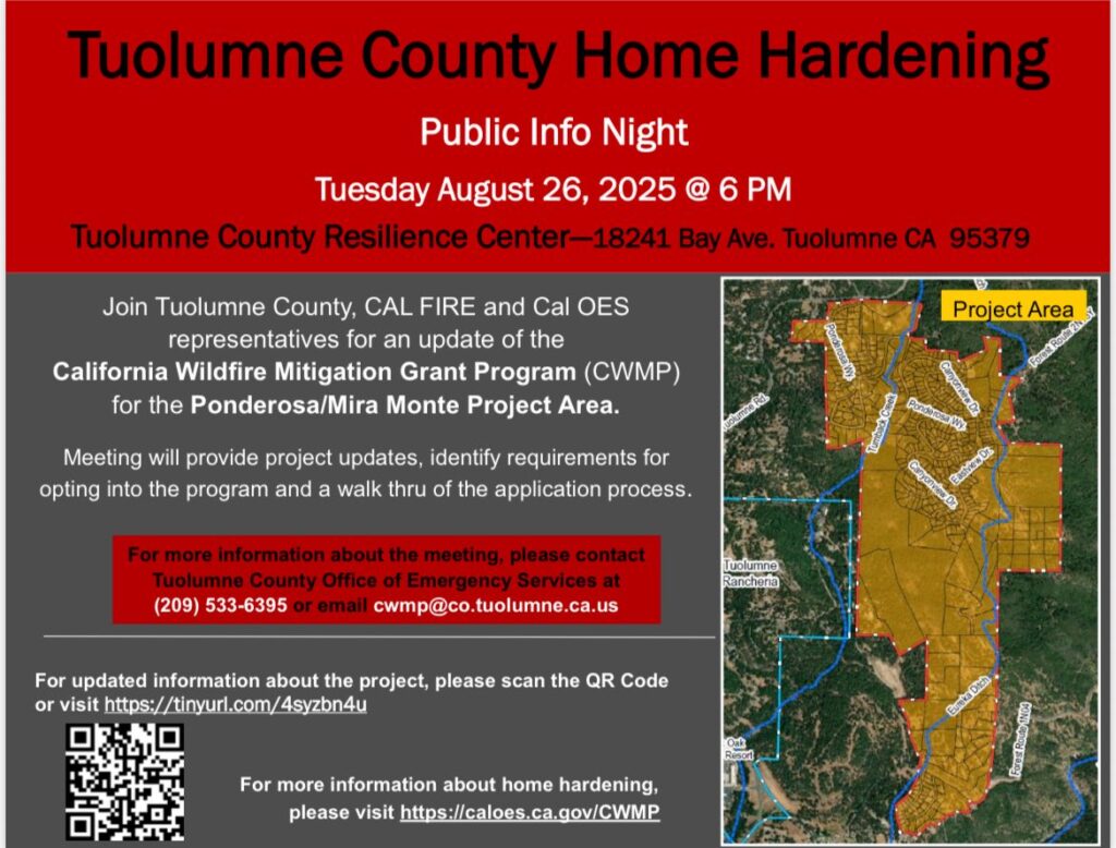- The Town Hall is still scheduled for tomorrow at 5:00 p.m. at the Tuolumne Resiliency Center.